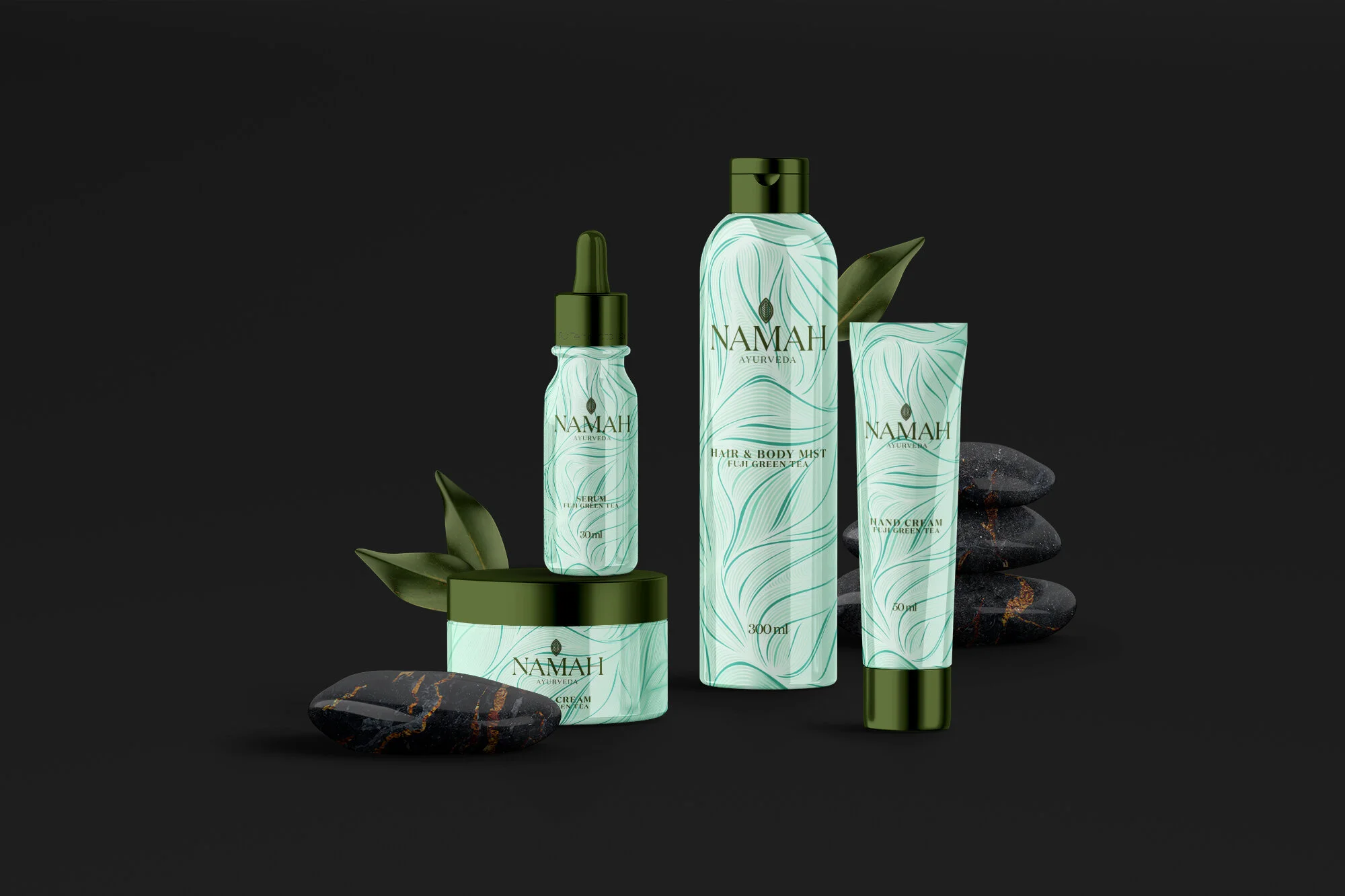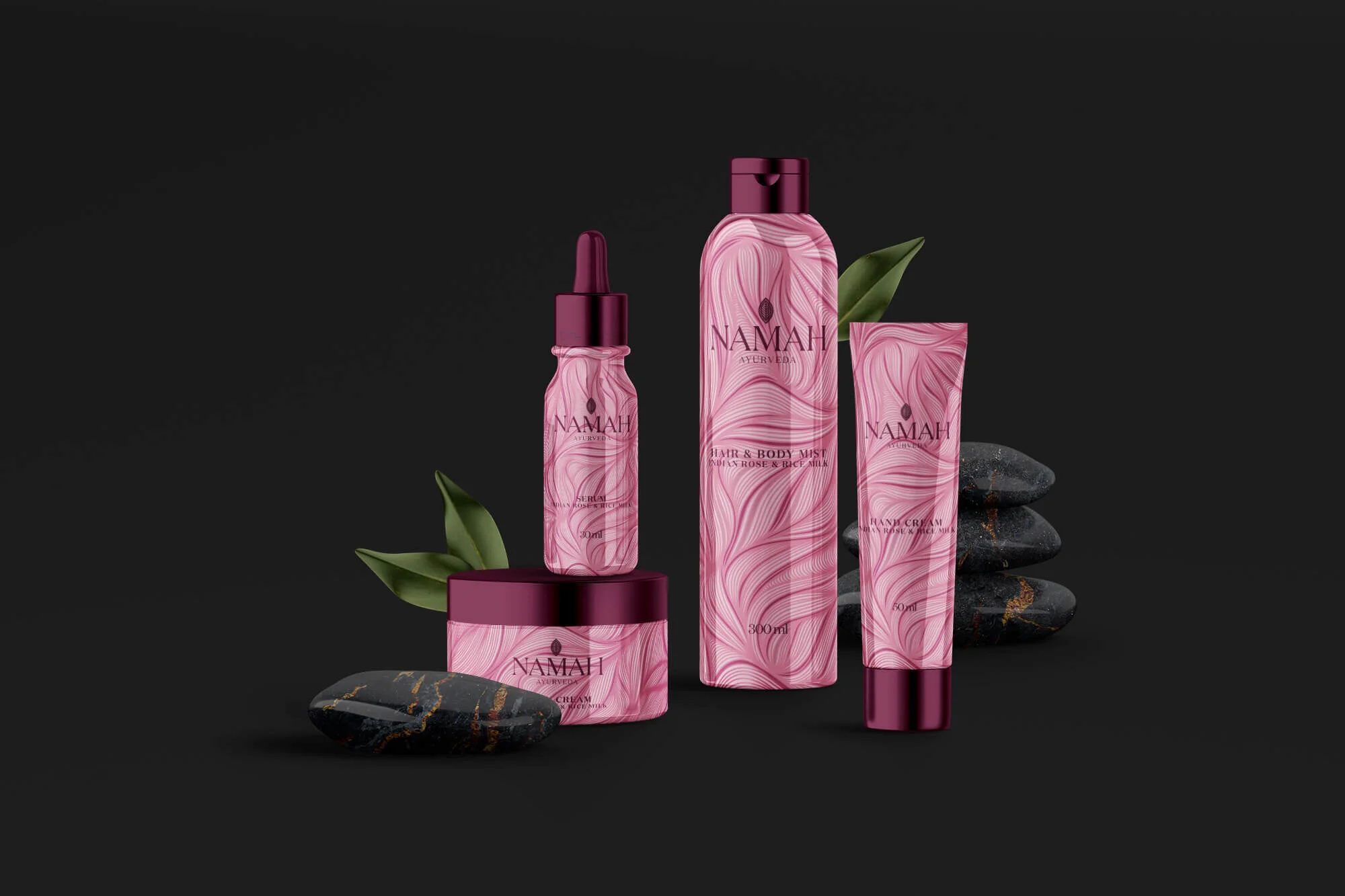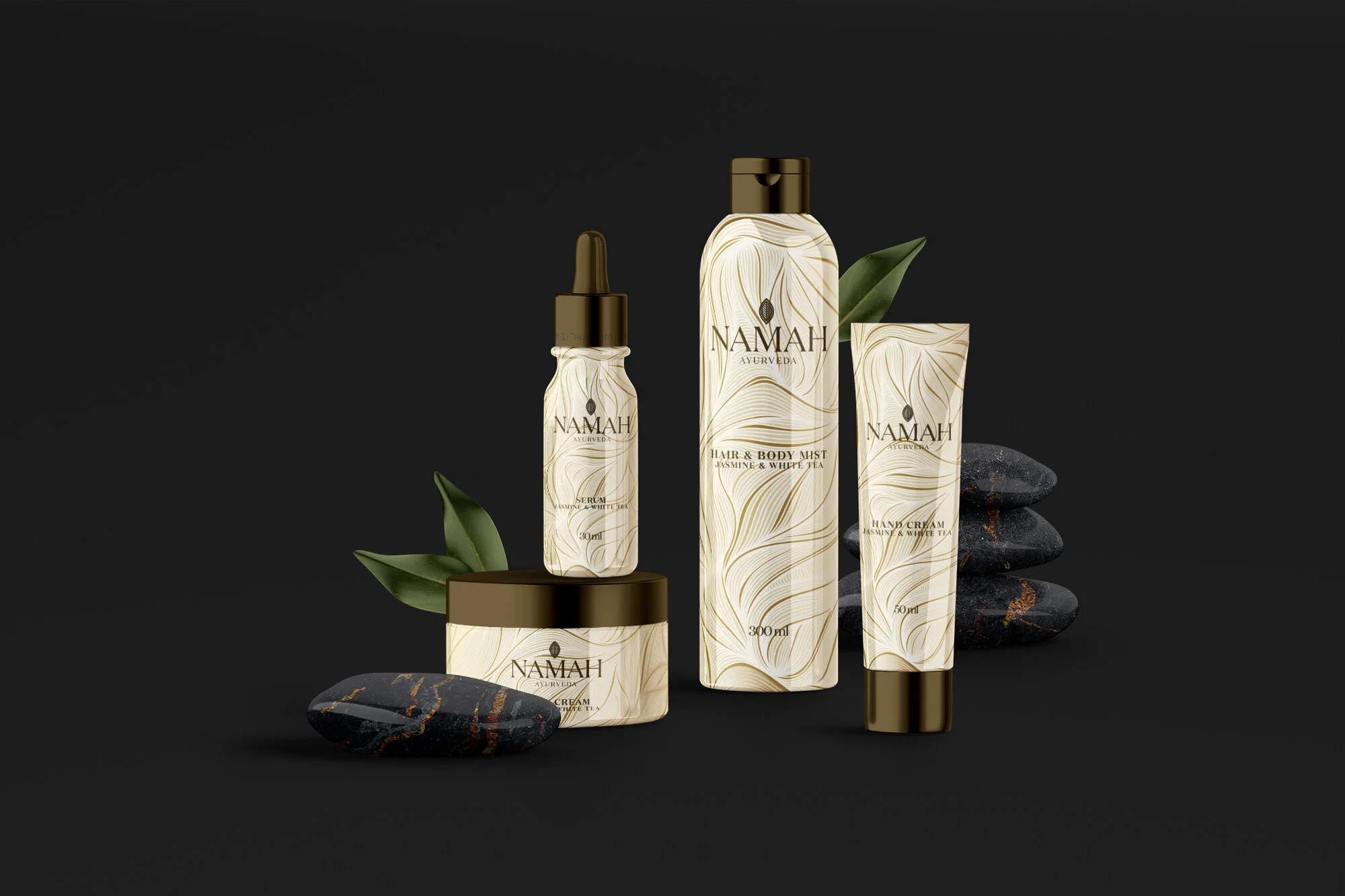 Namah is a fictional brand that produces organic ayurveda beauty and spa products.