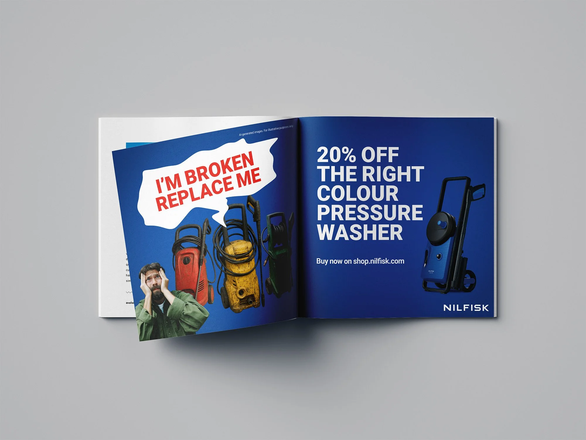 For Nilfisk, we created a content piece built around the campaign theme “Choose the Right Color”. The focus was on the signature Nilfisk blue, symbolizing reliability and durability. With a humorous approach, the story contrasted broken competitor high-pressure vacuums with the reliability of Nilfisk, leading to the key message: it’s time to invest in a new one — the right one. By positioning Nilfisk as the trusted choice, the content emphasized both product quality and brand identity.